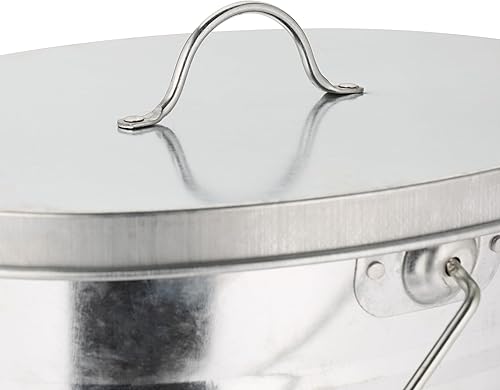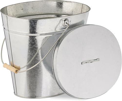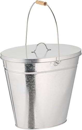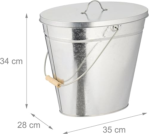Relaxdays Seau avec Couvercle, 22 L, poignée en Bois, pour Charbon & Cendres, cheminée, poêle, Acier galvanisé, argenté