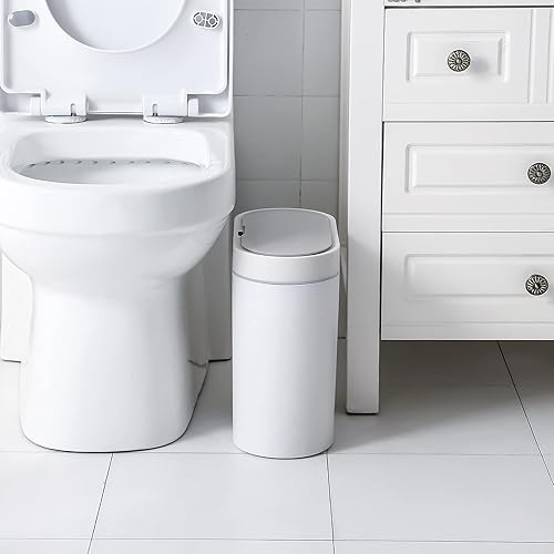 ELPHECO Poubelle de salle de bain étanche avec détecteur de mouvement et couvercle - En plastique fin - Blanc (taille S fine, 9,5 L)