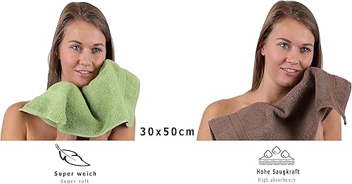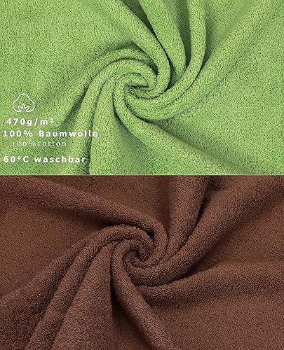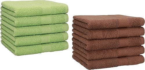 Betz Lot de 10 Serviettes d'invité Taille 30x50 cm 100% Coton Premium Couleur Vert Pomme et Marron Noisette