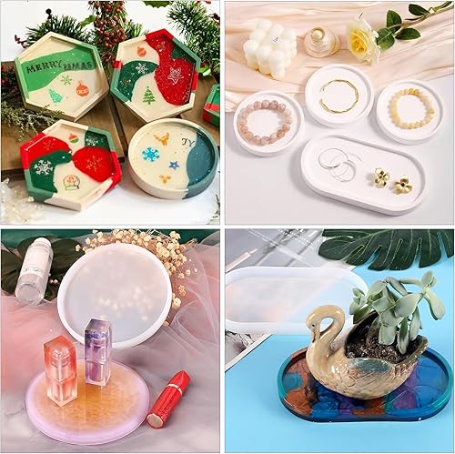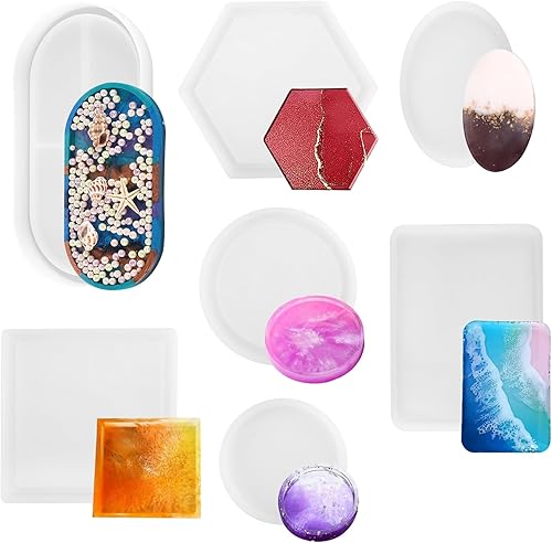 XIAQICA 7 Pièces Moule Silicone Resine Epoxy Dessous de Verre Ronds Hexagone Carrés Rectangle Ovale Bricolage Moulle Resine Epoxy pour Plateau Table à Manger Et Décoration de Maison
