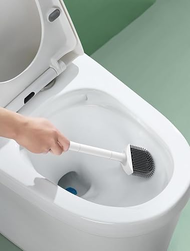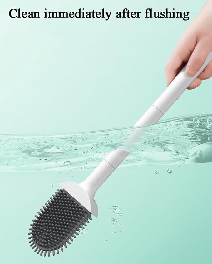 Brosse WC Silicone Antibactérienne à Séchage Rapide - Balayette Toilette à Manche Long