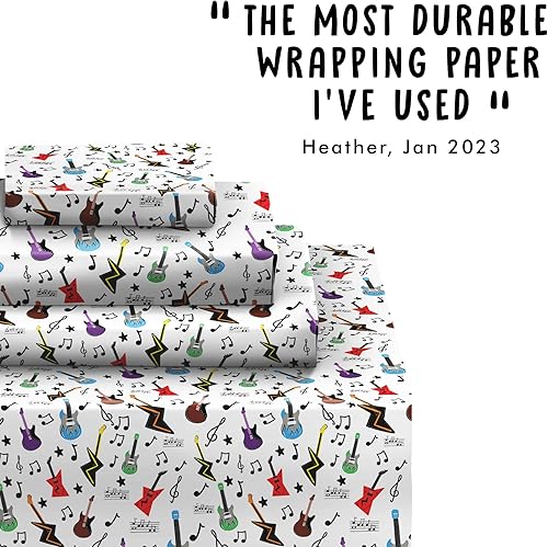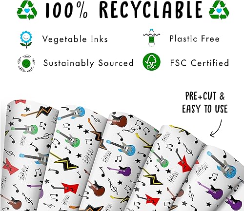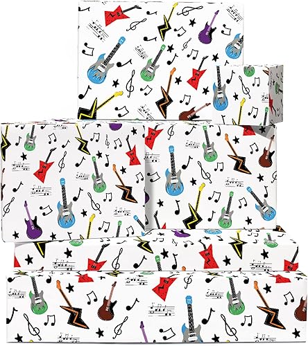 Papier Cadeau - Musique, Guitare - Papier Cadeau Anniversaire Garçon - (6x) Feuilles Cadeau - Pour Homme Femme Papier Cadeau - Livré avec des autocollants - Central 23