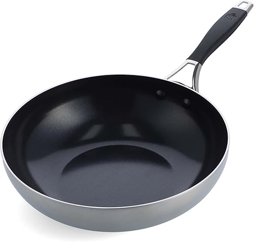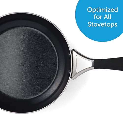 BK Intelligence Sauteuse de 28 cm/3,6 L en Acier Inoxydable avec Revêtement Antiadhésif en Céramique sans PFAS, Induction, Poignée Rester Froid, Va au lave-vaisselle, Va au four, Argent & Noir