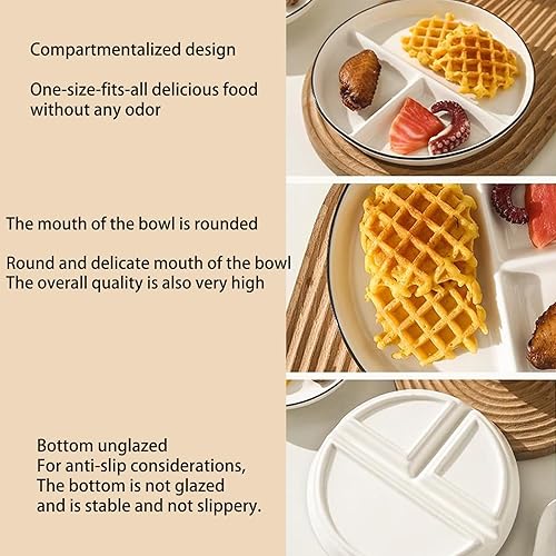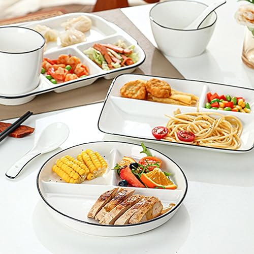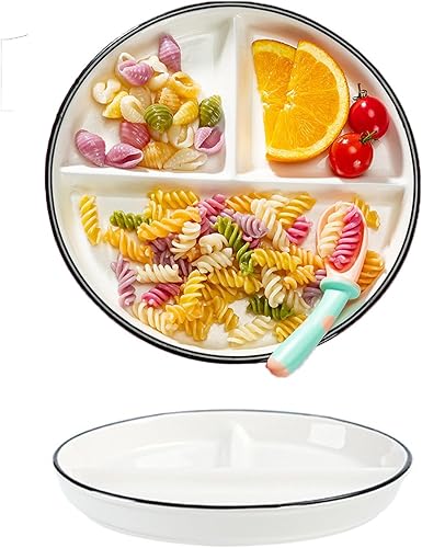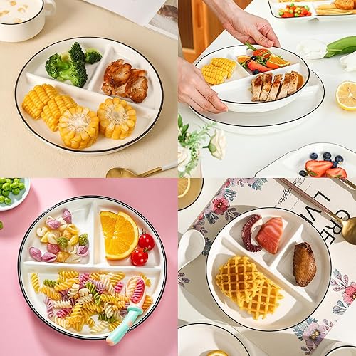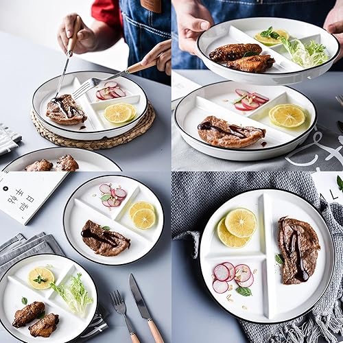 Sqxaldm Assiette Compartiment Adulte Diet Assiette Blanche Assiettes à Snacks Avec Compartiments Assiette Regime Portion pour Repas Fractionnés, Fêtes, Collations, Salades, Desserts (8 Pouces)