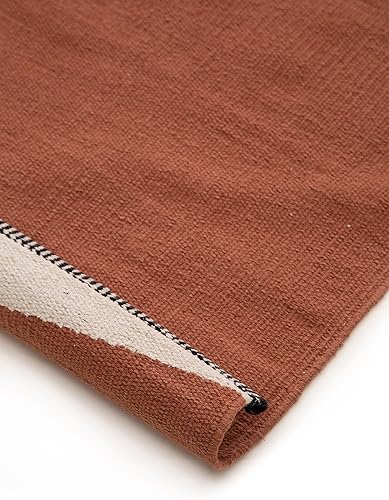 benuta Tapis pop en coton Lenny - Terracotta 60 x 100 cm - 100 % coton - Rectangulaire et dans le style : abstrait, géométrique, rayé, minimaliste, nature, rétro - Facile d'entretien pour le salon
