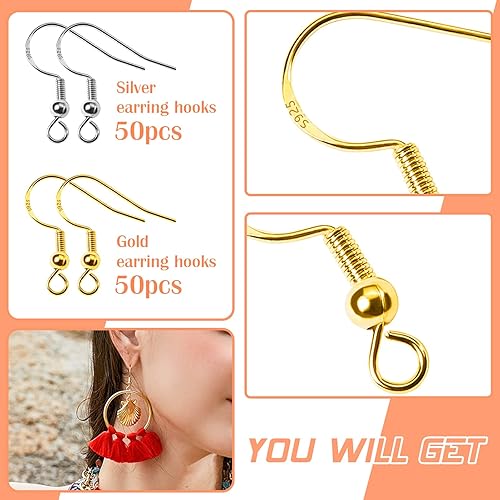 TOAOB 100pcs Crochet de Boucle D'oreille en Plaqué 925 Argent Hypoallergéniques 18mm Argent et Or pour Fabrication de Bijoux