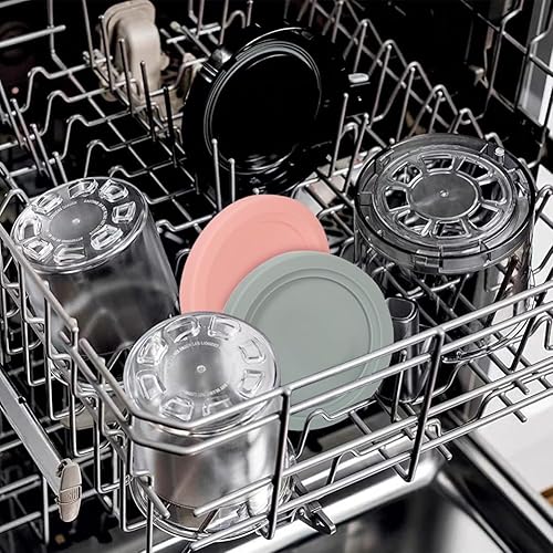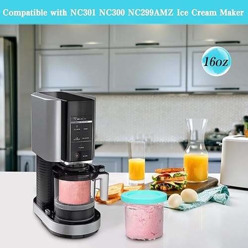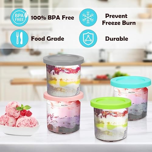 YQL Lot de 4 récipients à crème glacée de 453,6 g avec couvercles pour machine à crème glacée Ninja NC300UK, bacs à dessert transparents de 450 ml, passent au lave-vaisselle (gris, rose, bleu, vert)