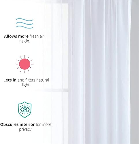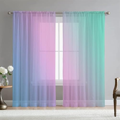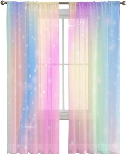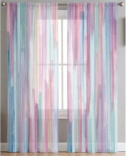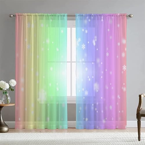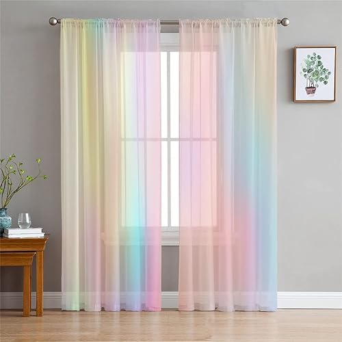 Hiseng Lot de 2 Rideaux Voilages Panneaux de Fenêtres Semi-Transparent en Effet Voile Décoration de Fenêtre pour Salle de Bain Balcon Chambre Salon Cuisine (132x160cm,Couleur Arc-en-Ciel 1)