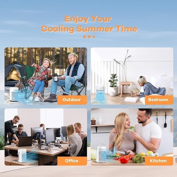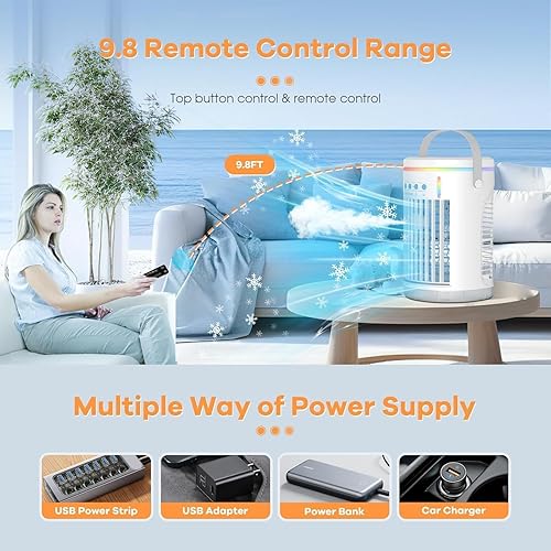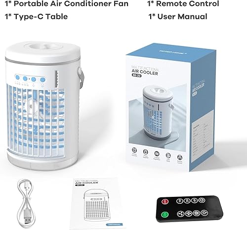Climatiseur Mobile, 1400ML Mini Climatiseur Portable Refroidisseur d'air avec Télécommande, 4 en 1 Mini Climatiseur Mobile Ventilateur avec 3 Vitesses pour Maison, Bureau, Voyages
