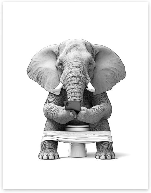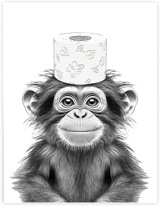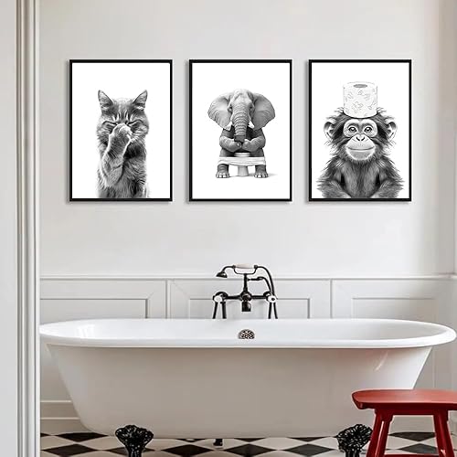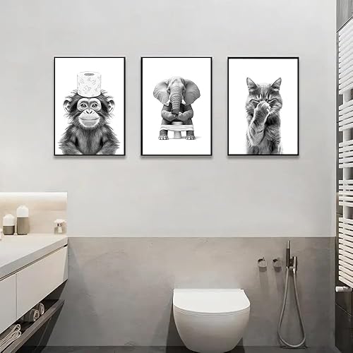 Youihom 3 Affiches Animaux WC Noir et Blanc Décoration Murale pour Toilette Poster Photo Animaux Deco WC Tableau Toilette Decoration Toile Chat Singe Elephant (YHH021-21x30cm)