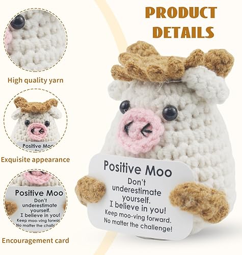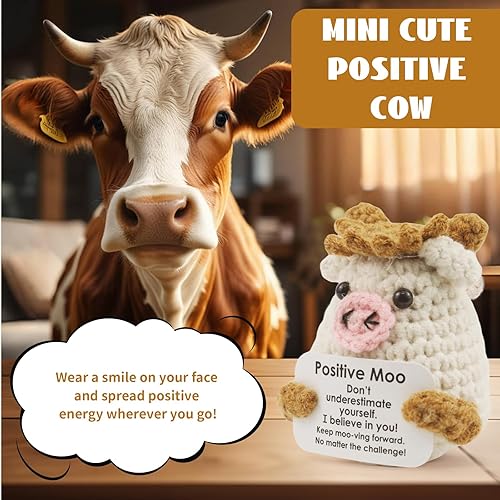 Kabwea Mini cadeaux de vache positifs au crochet, cadeaux de soutien inspirants, cadeau unique pour les amis