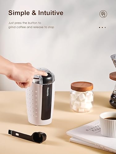 Moulin a Café Electrique, Capacité 100g, Lames en acier inoxydable avec protection anti-usure, 200 watts, Noir (Blanc)