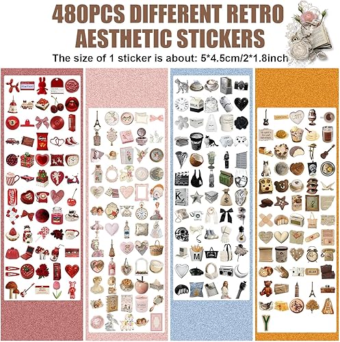 Lot de 480 autocollants vintage, imperméables, esthétiques, rétros, esthétiques, pour bouteilles d'eau, scrapbooking, ordinateurs portables, coques de téléphone portable, vélo