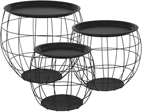 ML-Design Lot 3X Tables d'Appoint, Ronde, Noir, Corbeilles Métalliques, Table Basse 3 Tailles Ø31 cm/Ø38 cm/Ø47 cm, Plateau Amovible, Espace de Rangement, Moderne, Tables Gigognes/Empilables de Salon