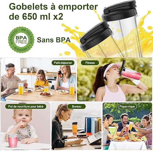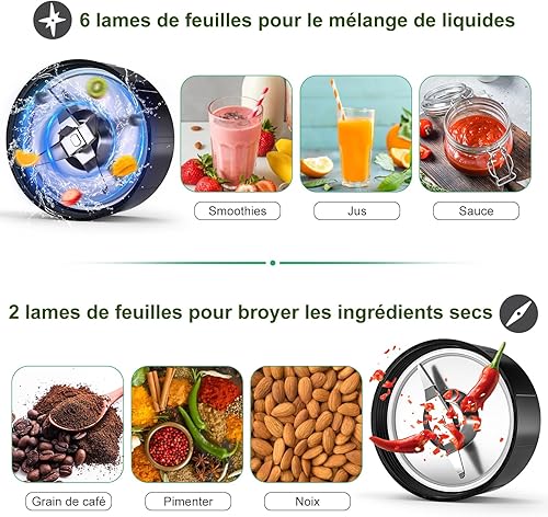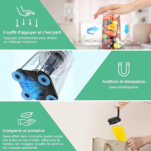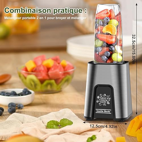 Rawhui Mixeur Électrique 800W pour Smoothies, Mini Blender avec 2 Bouteilles Portables de 600 ml, Sans BPA, 6 Lames en Acier Inoxydable, Idéal pour Milkshakes, Smoothies et Aliments pour Bébé