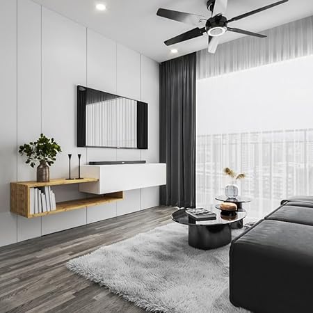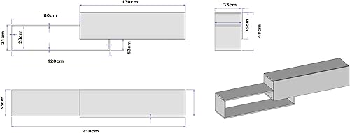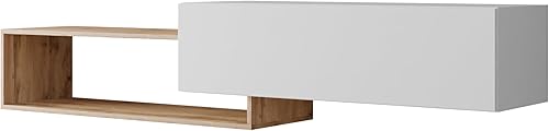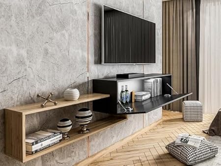BDW - RTV UNI - Meuble TV avec Rangement - Banc TV Debout ou Suspendu - Meuble TV avec 2 Armoires et Étagères - Meuble Salon - Construction Solide - 160x47x35 cm - Noir/Chêne Wotan