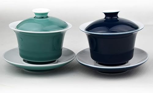 Liang baobao Gaiwan Tasse à thé en porcelaine émaillée blanche avec couvercle et soucoupe Motif sancai chinois Vert 150 ml