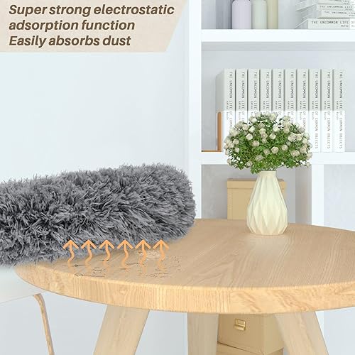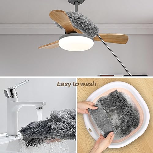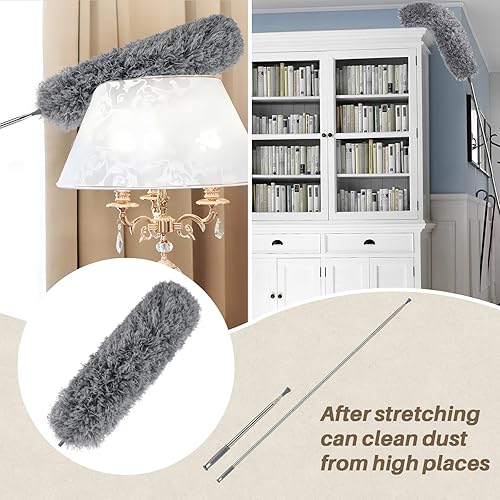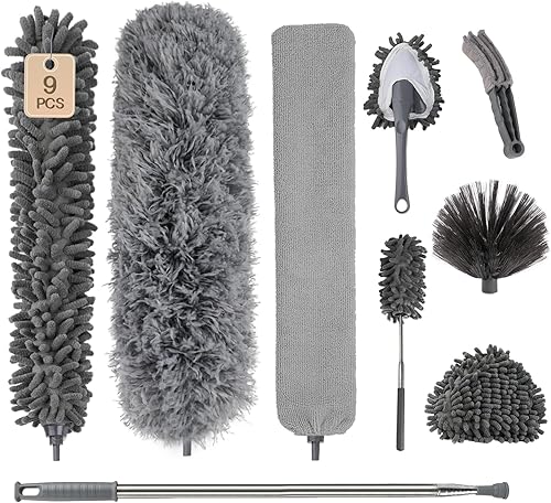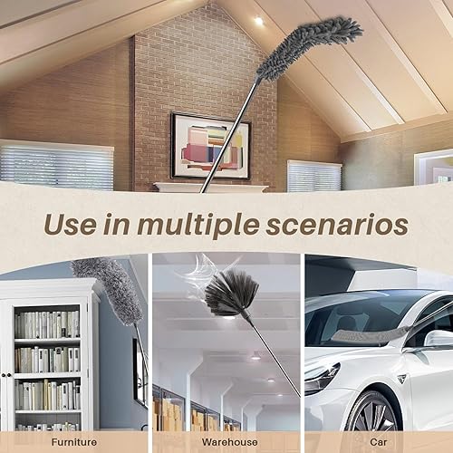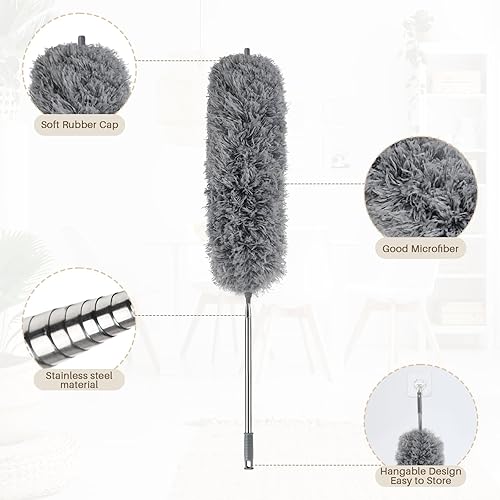 Plumeau Télescopique, Microfibre et en Acier Inoxydable avec Télescopique et Balai d'angle Flexible Pouvant Atteindre 240CM Plumes pour Une Utilisation Partout dans la Maison (9CS)