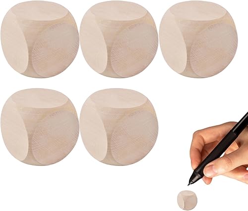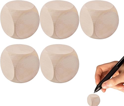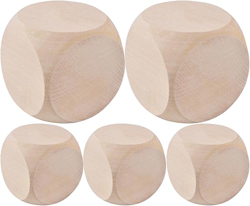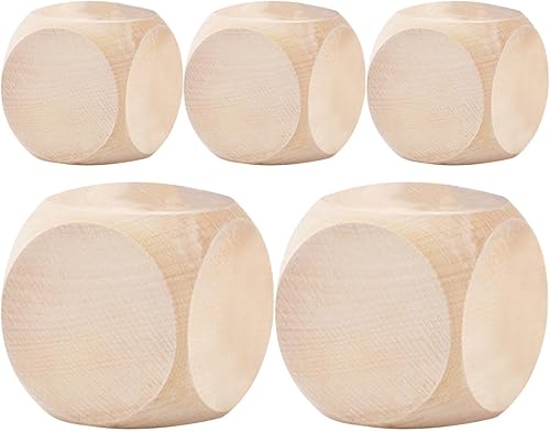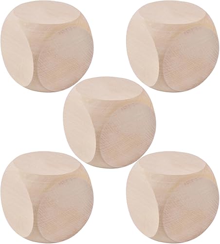 Lot de 5 cubes en bois vierge avec coins ronds, 6 côtés, vides, 40 mm