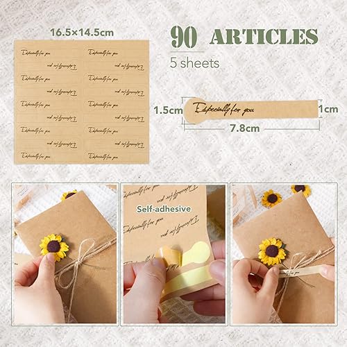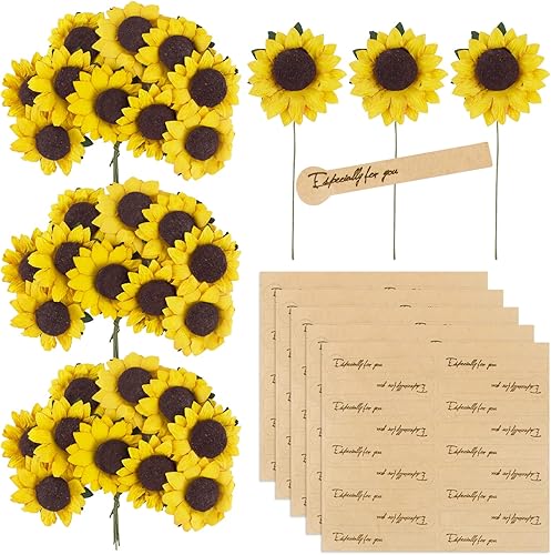 BETESSIN 100pcs Tournesol Artificielle Fausse Bouquet de Tournesol avec Tige et 5 Feuilles 90pcs Autocollants Stickers Fleurs Floral Décoration Carte pour Fête Mariage Travaux Manuels Festival Maison