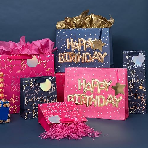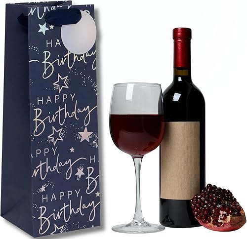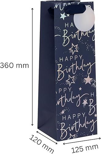 Glick Grand Sac Cadeau Bouteille Inscription Happy Birthday 125x360x120mm Sac Luxe Recyclable Anniversaire Bleu