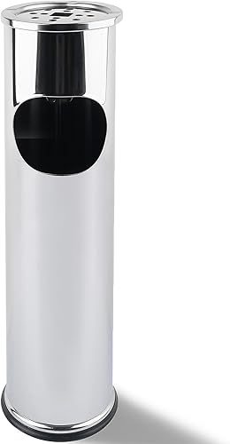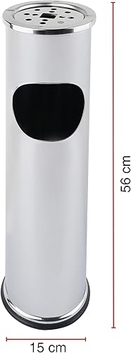 Grafner Cendrier sur pied 2 en 1 en acier inoxydable avec poubelle, 8 litres, Ø 15 x 56 cm, argenté, cendrier sur pied pour extérieur, intérieur