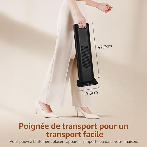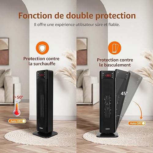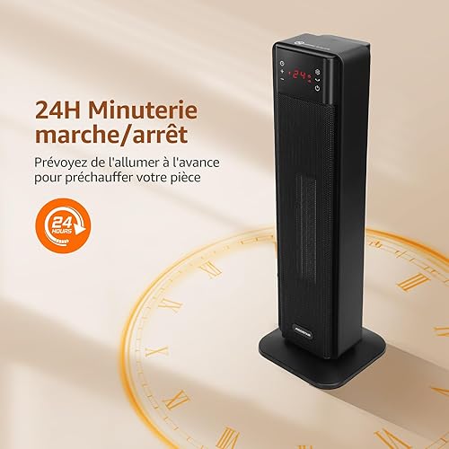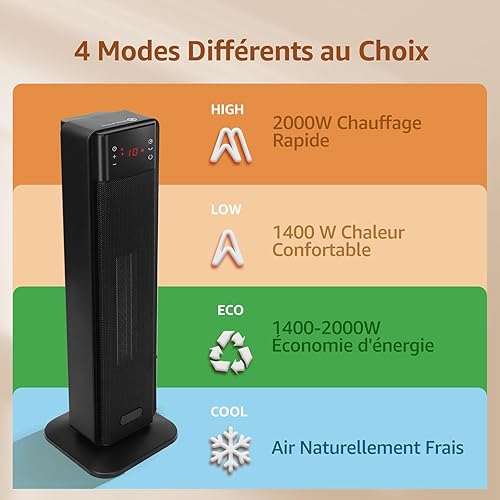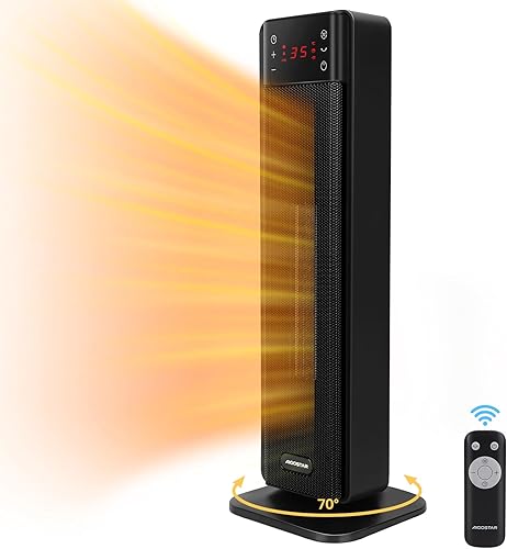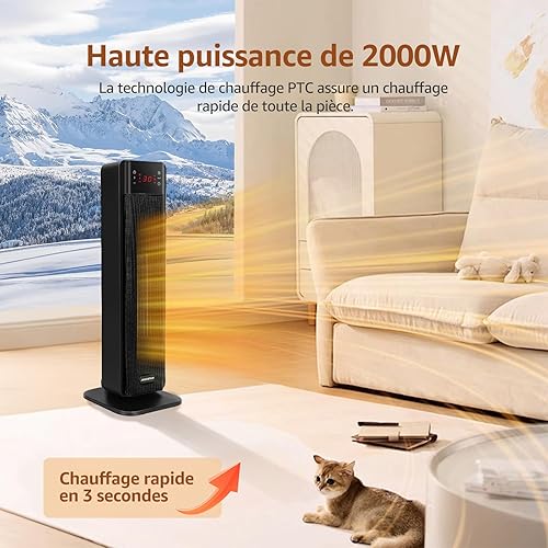 Aigostar Chauffage Electrique sur pied, Chauffage Céramique PTC 2000W, 4 Niveaux de Chauffage,Oscillation 70°, Portable,Écran Numérique et Télécommande, Noir -Sunniva