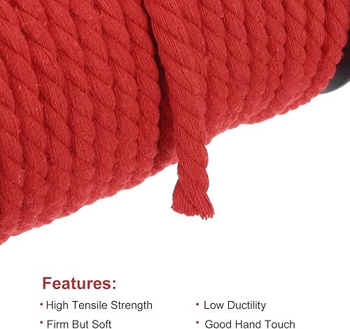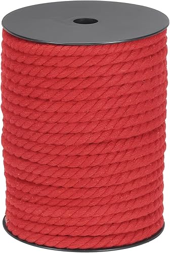 QUARKZMAN Corde en Coton à 3 Brins Torsadée, Corde Tressée, Rouge 40M/47 Yards 8mm de Diamètre pour Suspendu Murale, Suspendu de Plante, Tricot, Nœuds de Macramé