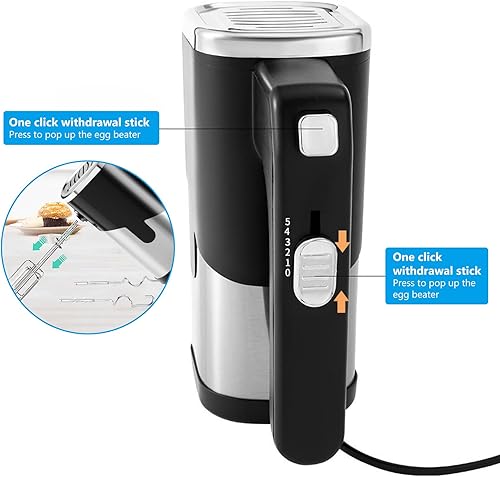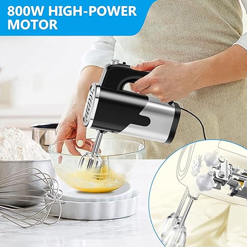 Batteur Electrique: 800 W Batteur à Main, 5 Vitesses Batteur à Main électrique, Batteur à Main Polyvalent Avec 2 Batteurs Et 2 Crochets Pétrisseurs Pour Sauces, Crème (Noire)