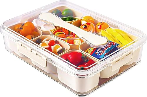 Snack Box, 9 Compartiment Snack Disc, Couvercle Snack Box Manager, Fruits, Noix, Ideali Per Picnic e Riunioni di Famiglia