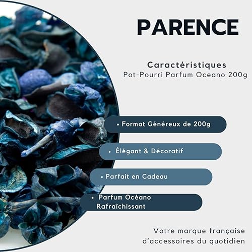 PARENCE.- Pot-Pourri Parfum Oceano 200g – Sachet Décoratif au Parfum Marin – Ambiance Fraîche pour Intérieur, Tiroirs, Voiture, Salle de Bain – Oceano 200g