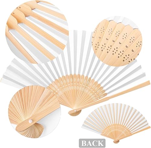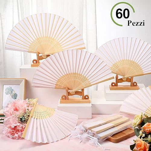 60Pcs Eventail Mariage Pliant de Papier Eventail Blanc pour Cadeaux Invités Mariage Baptême Décoration Mariage Eventail Blanc