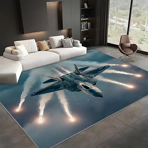 WHUOEUCO Tapis Salon Avion De Chasse 60x120cm Tapis Lavables avec Dos Antidérapant, Design Poils Courts Moderne, pour Chambre Adulte Enfant, Salle à Manger, Cuisine