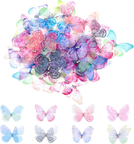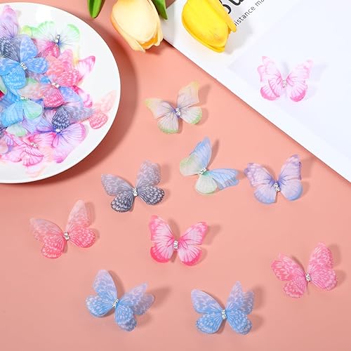 YUXIANLB Lot de 60 mini papillons en organza pour travaux manuels, décoration murale colorée pour mariage, fête, maison