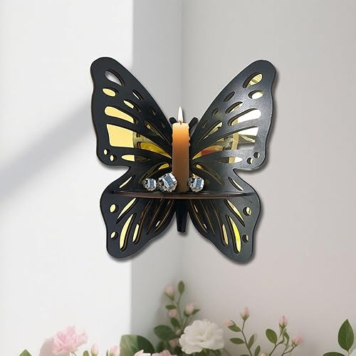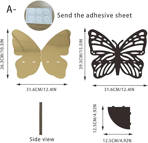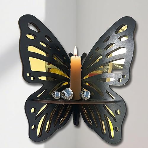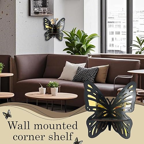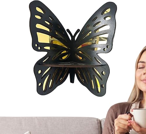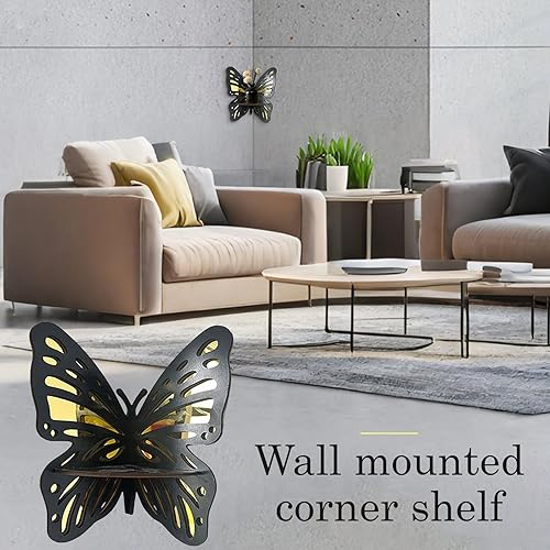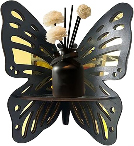Generisch Étagère d'angle murale - Étagère murale décorative flottante avec design papillon - Étagère en bois vintage pour chambre à coucher, bureau, salle de bain