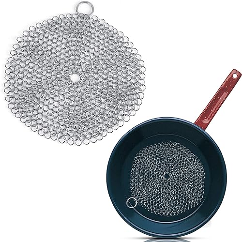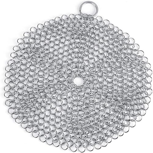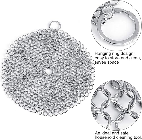 Laine d'acier, nettoyant en fonte 17,8 x 17,8 cm en acier inoxydable 316L de qualité supérieure pour poêle, wok, casserole, poêle, poêle pré-assaisonnée, fours hollandais, gaufriers, grattoir en fonte