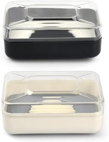 Pack de 2 Porte-Savons Luxueux avec Couvercle, Boîte à Savon de Voyage, Boîte à Savon Solide, Idéal pour Salle de Bain, Toilette, Cuisine (Noir et Blanc)