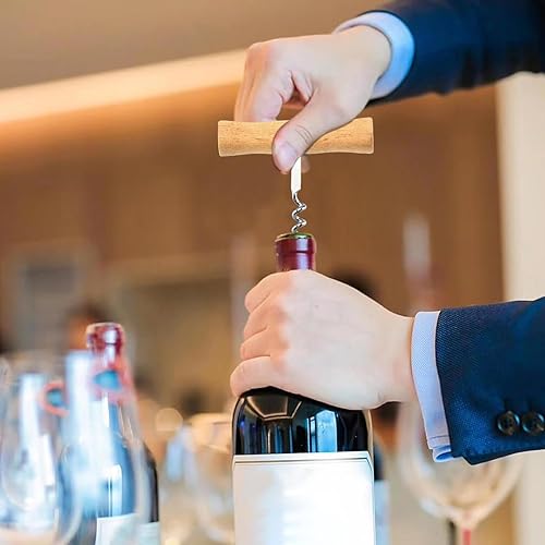 Tire-bouchon classique - Ouvre-bouteille manuel en forme de T - Accessoire de vin manuel professionnel portable en acier inoxydable - Facile à visser et à tirer - Pour homme et femme