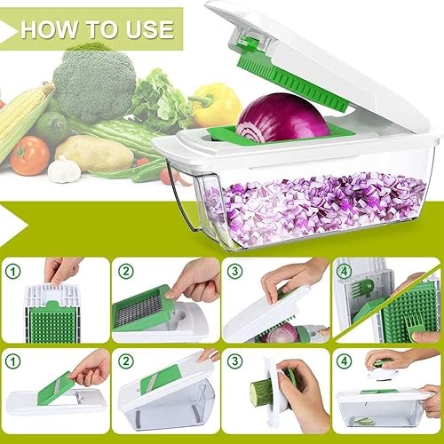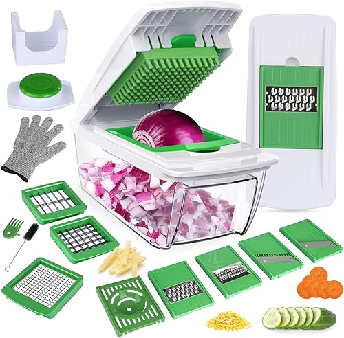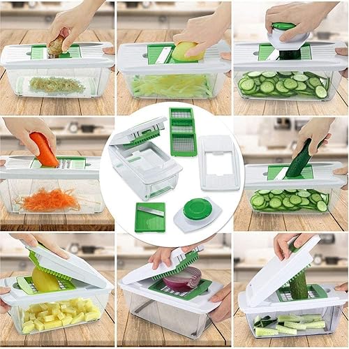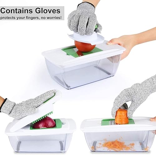 Mandoline Cuisine Multifonction Couper les Legumes Séparer les Oeufs Vert 7Lames Couteau en Acier Inoxydable Rapide et Facile à Nettoyer Au Lave-vaisselle/Gants et Brosse par Bonus