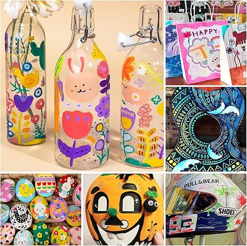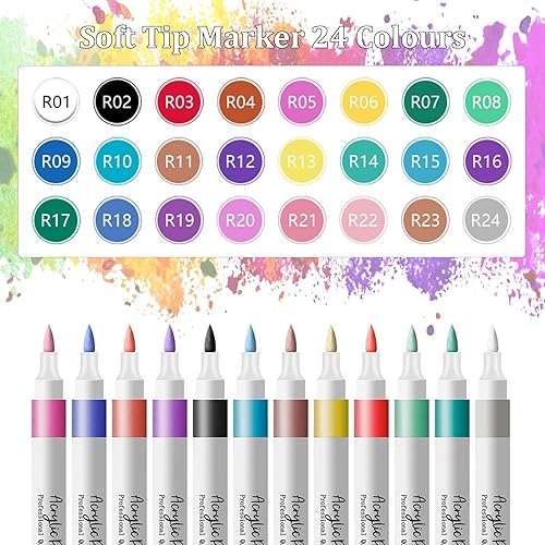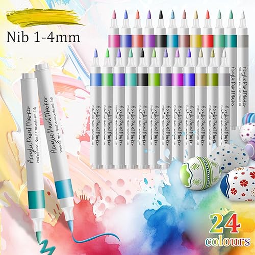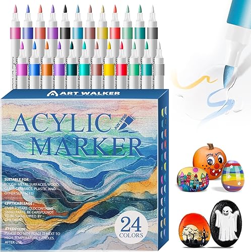 YHNMMNO Lot de 24 stylos acryliques étanches pour pierres, 1 à 2 mm, marqueurs acryliques pour pierres, peinture acrylique, marqueurs acryliques pour bois, toile, verre, papier, céramique