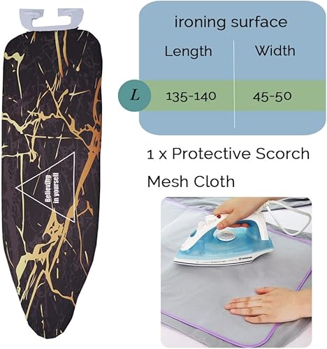 Highdi Housse Table à Repasser 140x50cm, Marbre Imprimé Housse de Table à Repasser Rembourrée Contre la Chaleur, Housse de Repassage avec Tissu de Protection (géométrie,140x50cm)