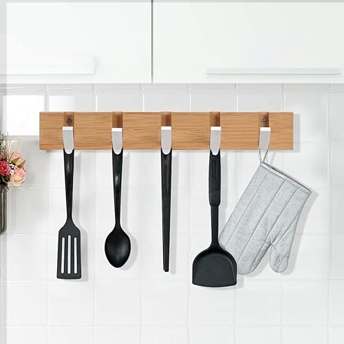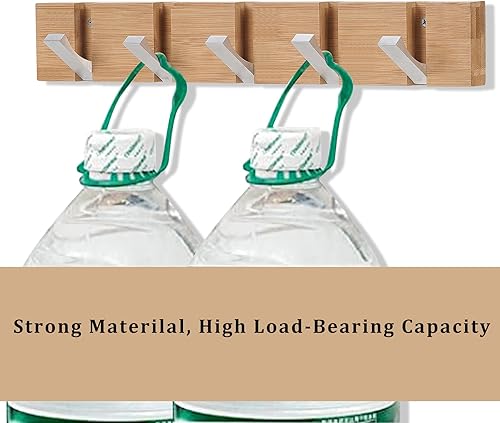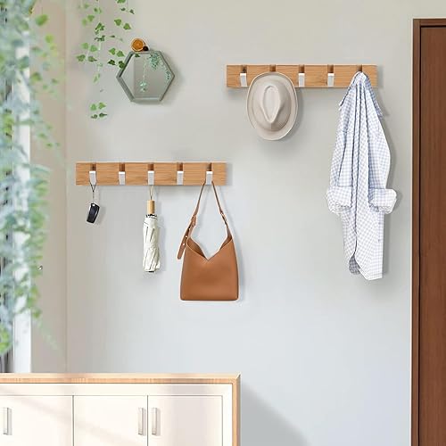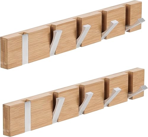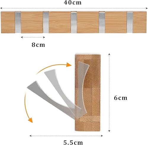 QILICZ Lot de 2 patères murales pliables en bambou avec 5 crochets pliants pour manteaux, chapeaux, écharpes, clés, porte-serviettes