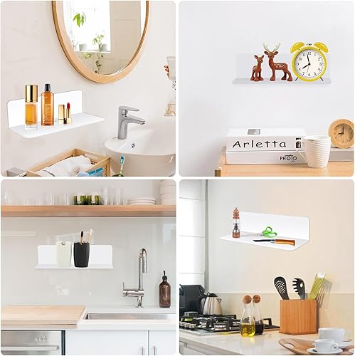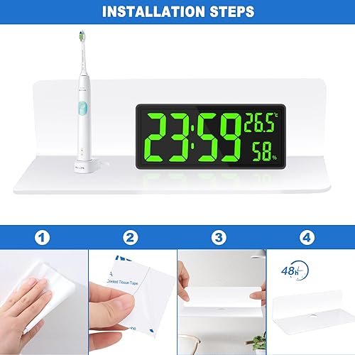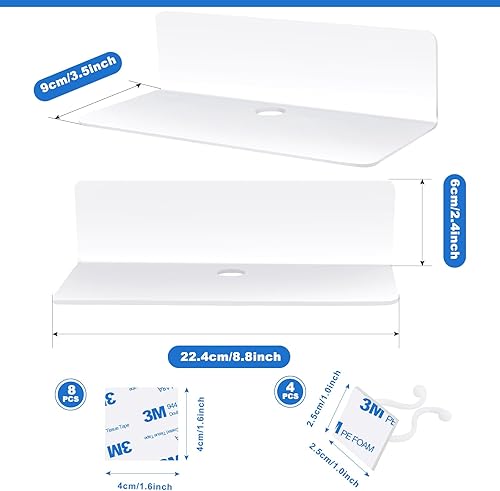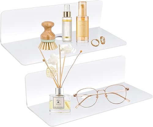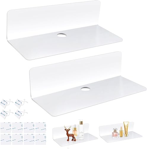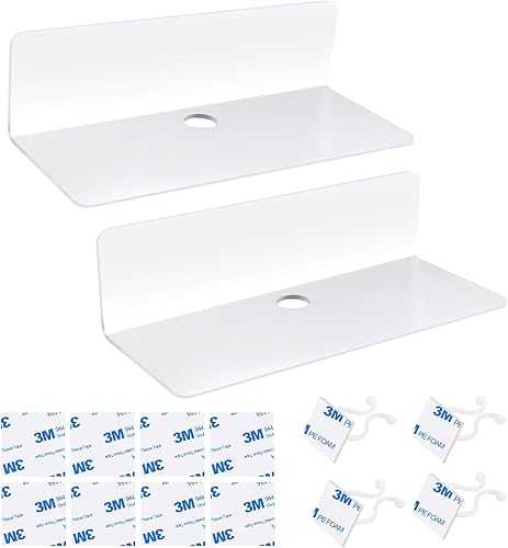 UKOFEW 2 Pièces Étagère Murale sans Percer, Étagère Flottante Acrylique, Etagere sans Percer en Acrylique, sans Perçage, avec Clips de Câble, pour Salon, Chambre à Coucher, Salle de Bain,Cuisine