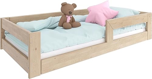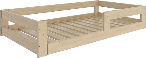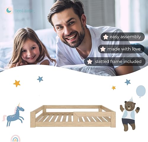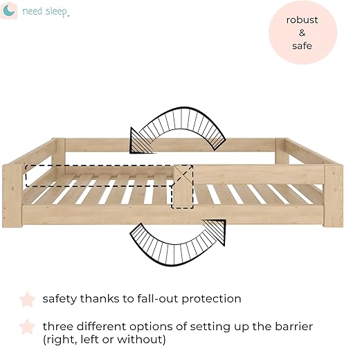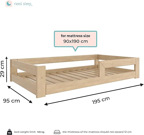 Need Sleep Montessori - Lit de Sol pour Enfant - 120 x 190 cm - avec Protection Anti-Chute - Sommier à Lattes, Bas - en Bois - pour Fille et garçon