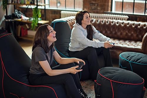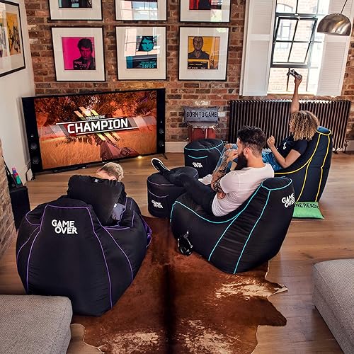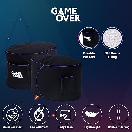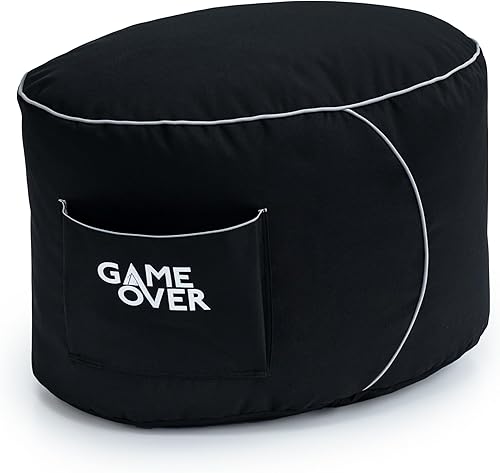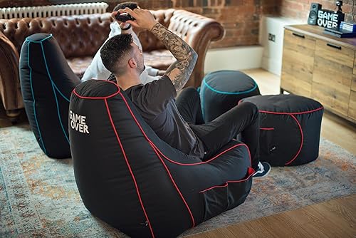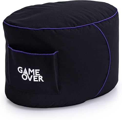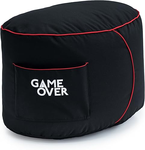 Game Over Repose Pied Pouf De Jeu | Repose Jambes De Salle De Séjour Intérieure | Poches Latérales pour Les Manettes | Faite pour Durer | Conception Ergonomique (Cramoisi électrique)