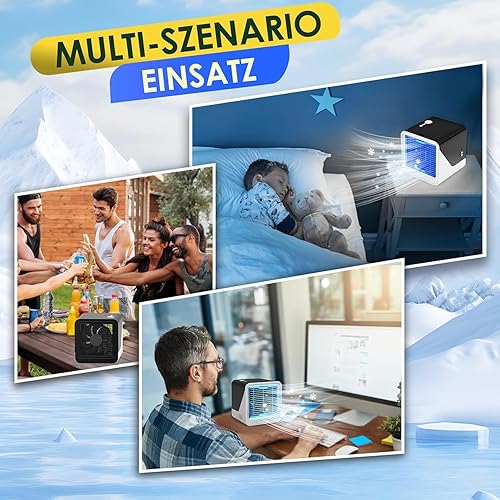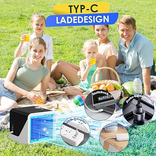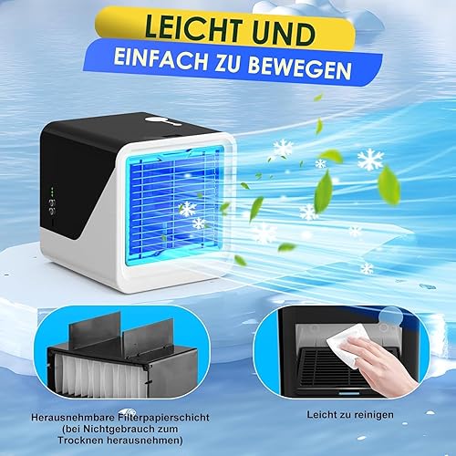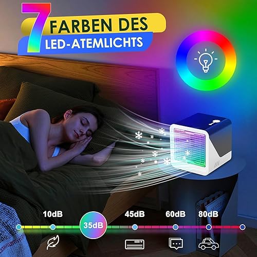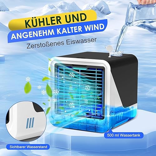 Climatiseur Mobile, Ventilateur USB 3 en 1 avec Refroidissement par Eau, Réservoir d'eau de 500 ML, 3 Vitesses, Lumières 7 Couleurs, Climatiseur Portable Rafraîchisseur d'air pour Chambre et Bureau