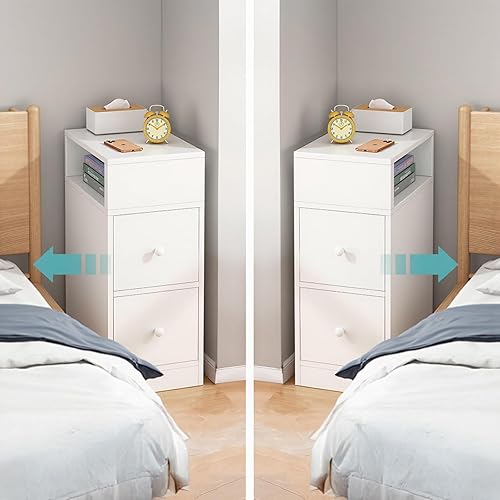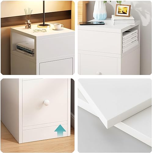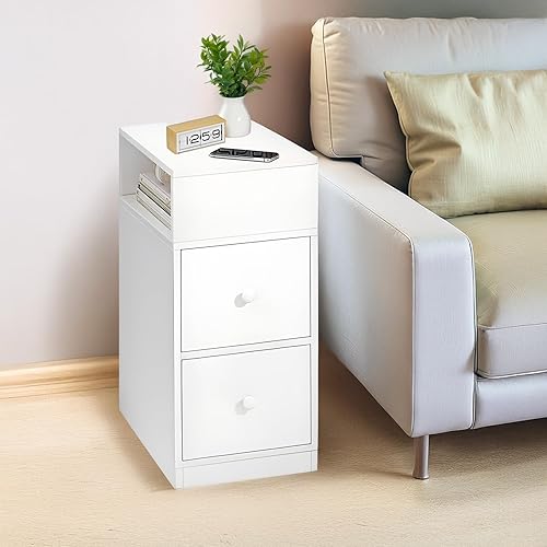 SHARPDO Table de Chevet Étroite 30x30cm, Rangement 3-en-1 Malin pour Studio & Petits Espaces (Base Scellée + Accès Réglable), Table de Nuit