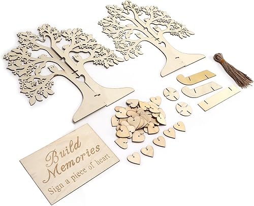 Greensen Livre d'or de Mariage, Arbre à Souhaits en Bois Fait à la Main, Tableau de Signature Personnel pour Mariages, Fêtes, Anniversaires