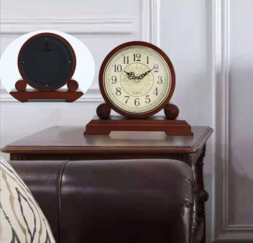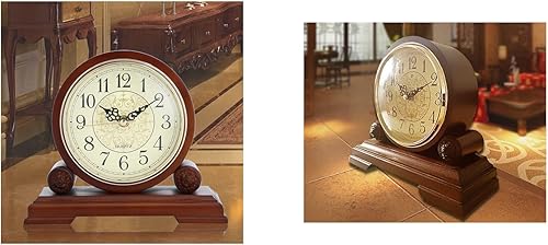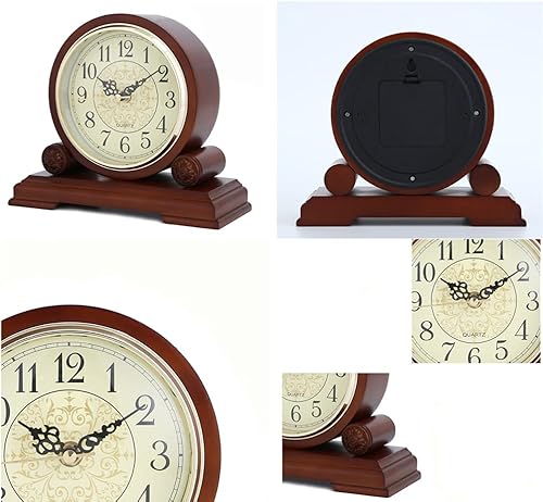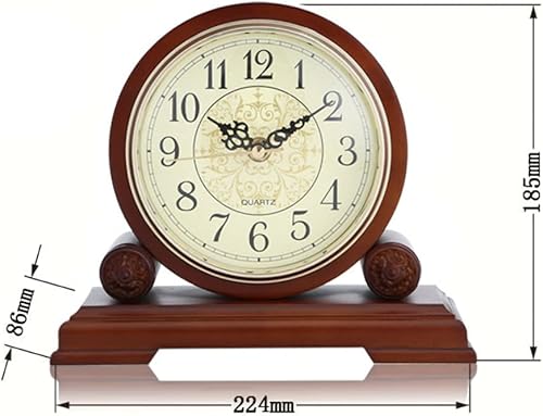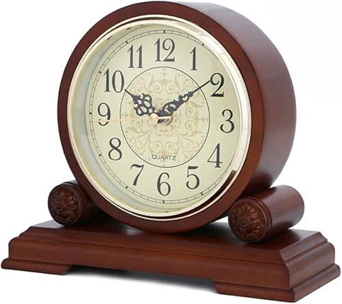 Tikwisdom Horloge de Bureau en Bois Massif, Horloge de cheminée avec Surface en Bronze et Chiffres, Horloge à Quartz silencieuse, Horloge de cheminée 23cm Long Brown
