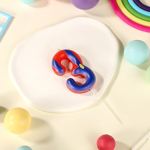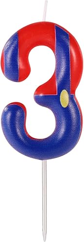 Pantalon à bretelles Bougies Chiffre d'Anniversaire, Bougies Gâteau Rouge et Bleu Bougies Décoration Gâteau Dessin Animé Décorations Gâteau pour Garçons Enfants Fête Anniversaire (Numéro 0)